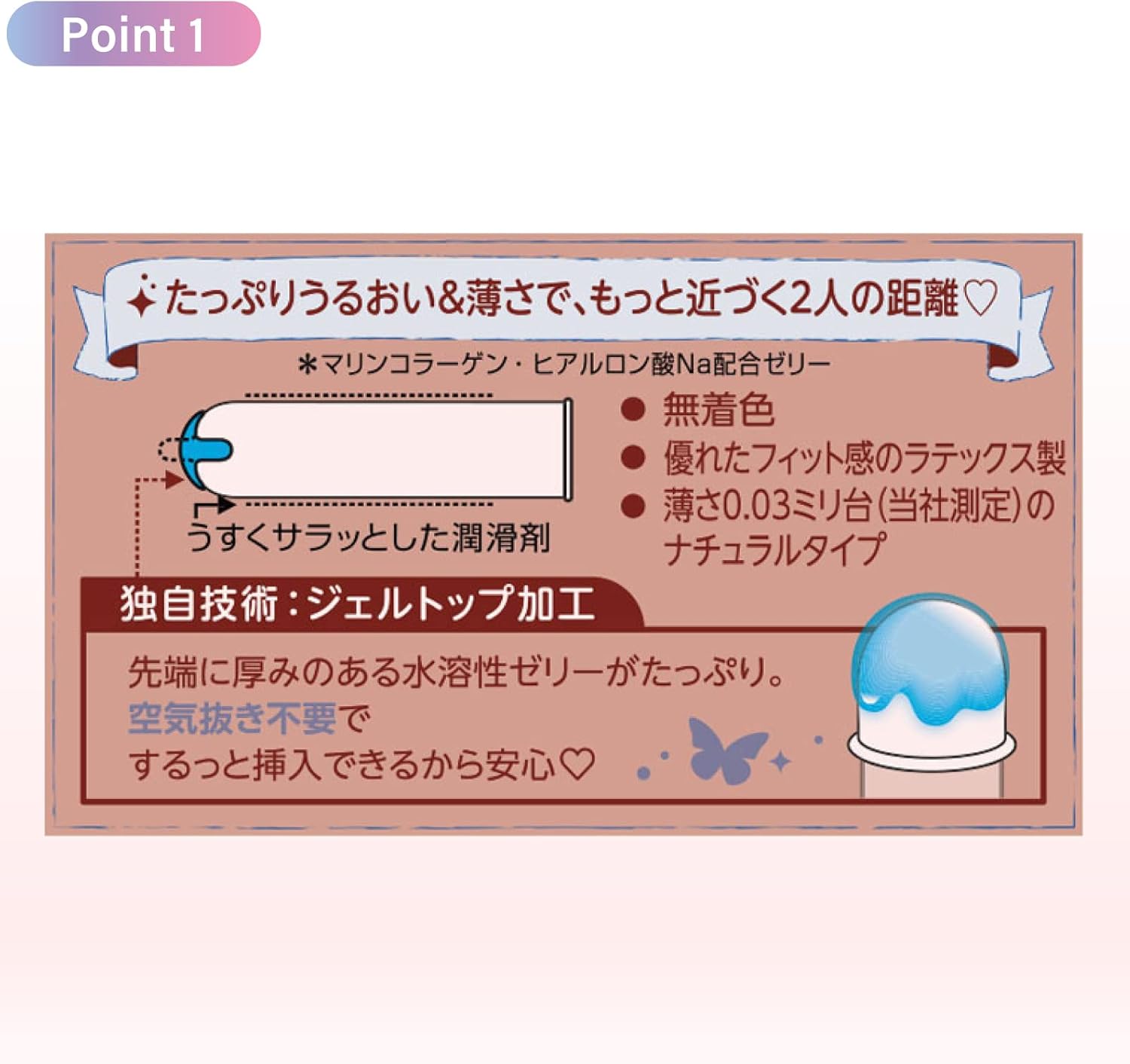 - 薄さ0.03ミリ台(当社比較)で2人がもっと近くに感じられる。